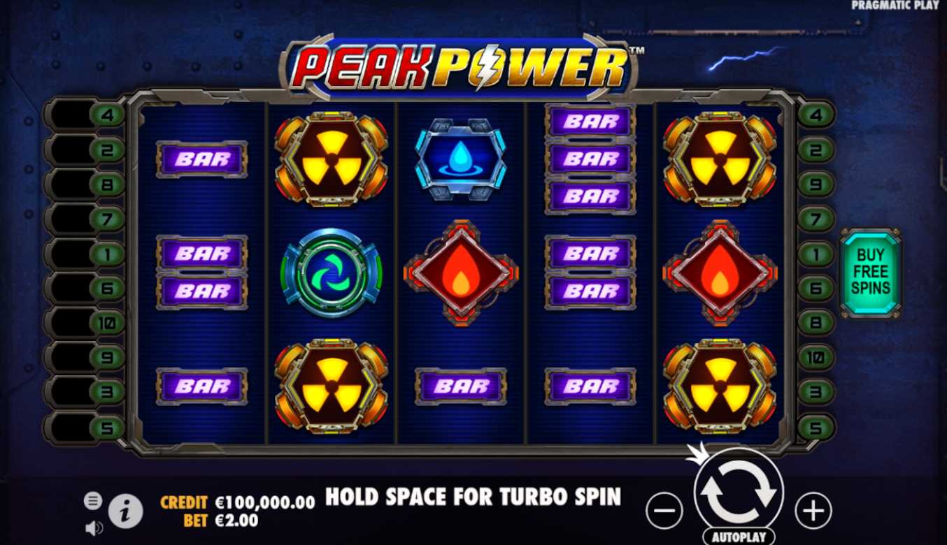 Peak Power is like a game about power plants and different types of energy production. This is evidenced by her whole appearance, similar to a switchboard with indicators. It should also be taken into account that the topic of combating global warming and the active transition to alternative energy sources are constantly on the agenda. The playing field is located against the backdrop of a wall covered with rivets and lightning flashes everywhere. Perhaps the developers were inspired by the inventions of Nikola Tesla. The symbols may represent various energy sources already mastered by mankind - thermal, nuclear, hydropower and renewable energy sources. The game screen sparkles and shows the indomitable power of the slot. An energetic and pleasant melody accompanies you during the game.