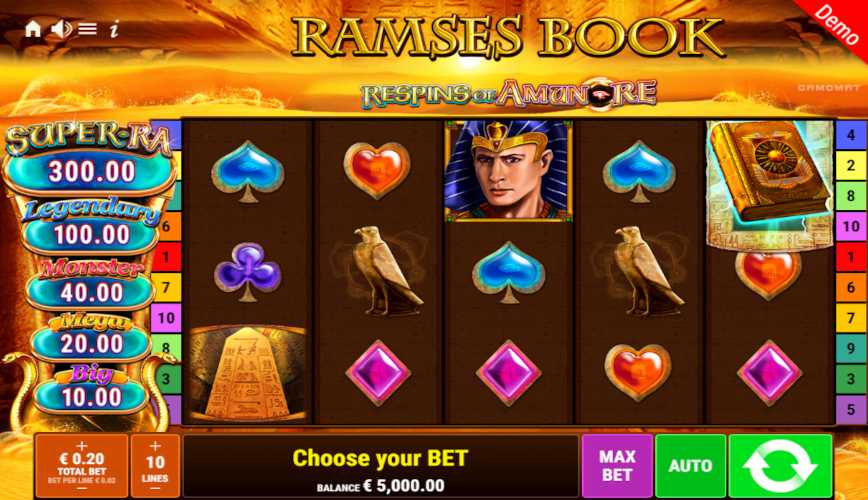 Yes, you’re welcome to play the Ramses Book Respins of Amun-Re slot without paying, without signing up.
