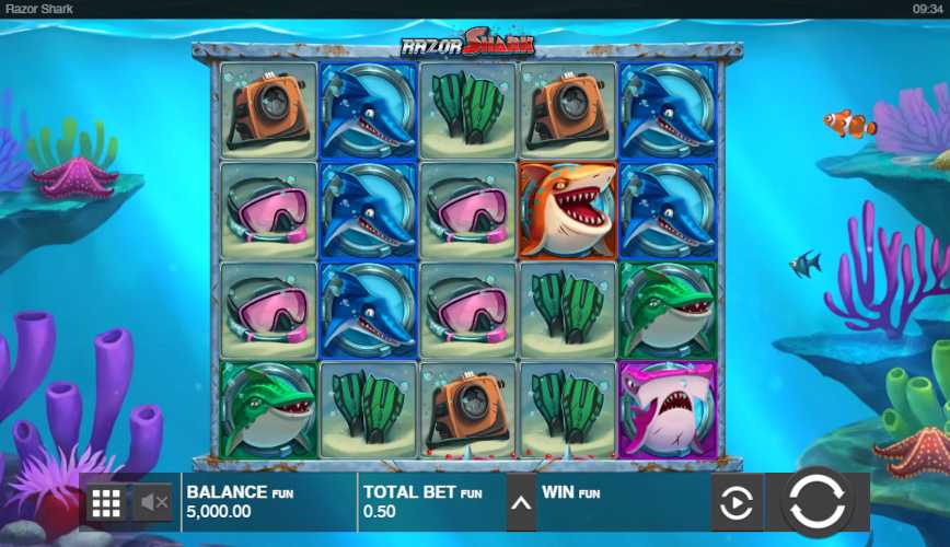Razor Shark is a video slot from Push Gaming that was released on August 20, 2019. The visuals in Razor Shark have a cartoonish quality, and the game takes place in the water. There are coral reefs and a variety of fish swimming about in the background, and there are also characters that resemble Nemo and Dory observing the reels as they spin. One of the first things that you are probably going to take note of is the immensely catchy music, which is an intoxicating instrumental that not only adds suspense and excitement to the action, but will also make you bob your head to the beat. Read our review to find out whether it is worth you time and money going underwater to swim with the sharks.