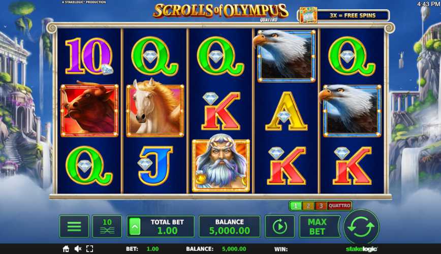 Most reliable place to play Scrolls of Olympus with cash stakes is at an online casino that is: +Licensed, +Safe and secure, +Transparent, +Pays out quickly, +Gives good rewards, and +Provides 24/7 support.