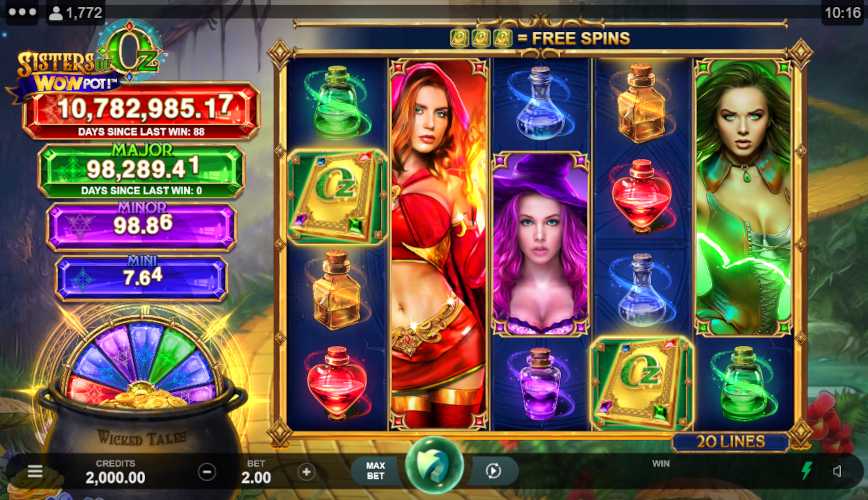Most reliable place to play Sisters of Oz WowPot for real money is at an online casino that is: +Regulated, +Safe and secure, +Transparent, +Pays out quickly, +Has bonuses and promotions, and +Provides 24/7 support.