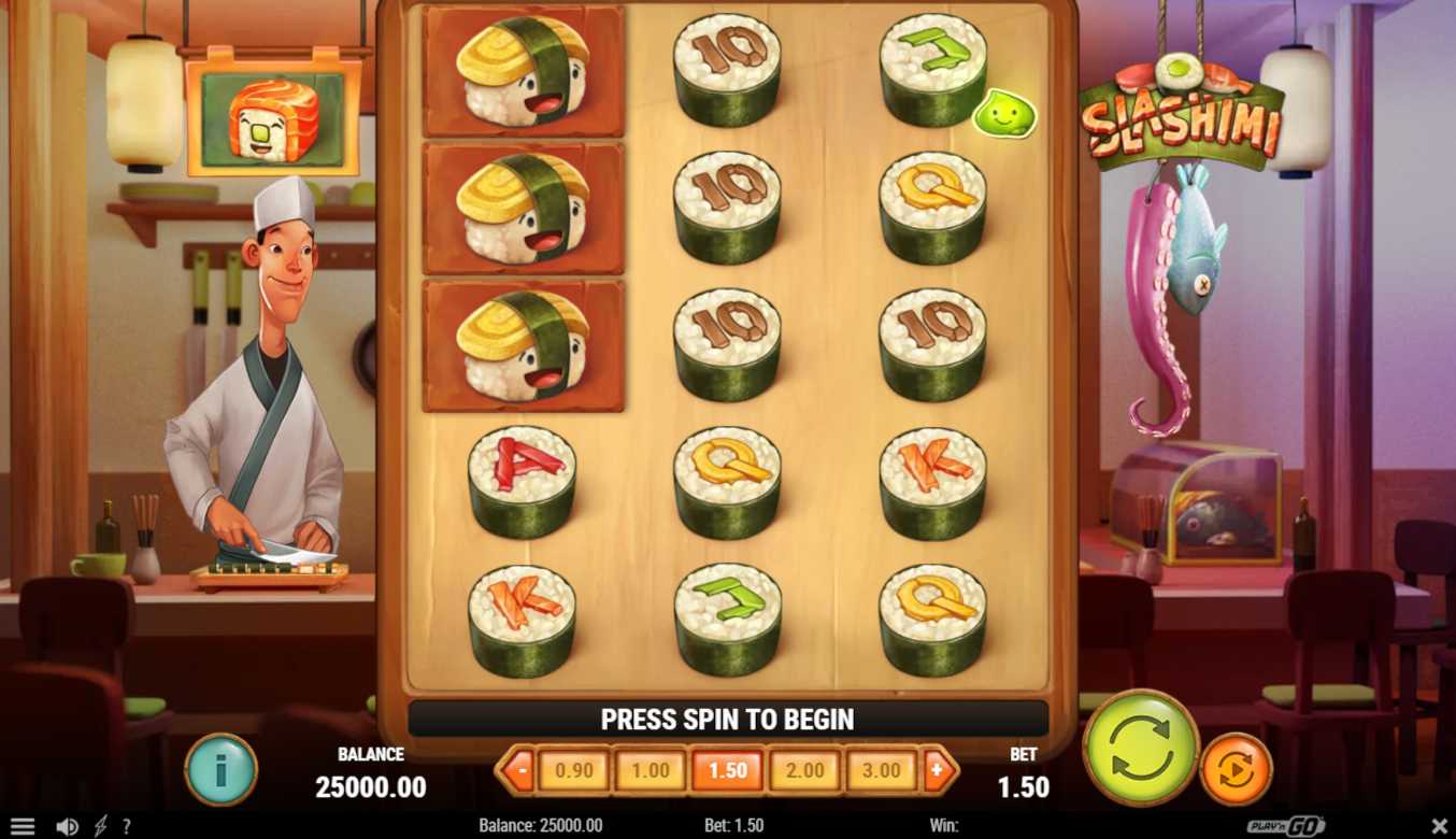 Yes, you’re welcome to play the Slashimi slot for free, no registration needed.
