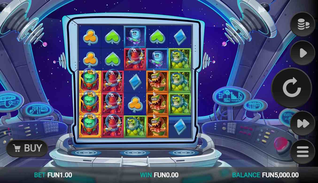 Space Attacks Dream Drop slot by Relax Gaming is an exhilarating odyssey set in space among whimsical aliens. Against the backdrop of a spaceship's control panel, the expansive 5x5 layout with 295 ways to win promises an engaging gaming experience, with a Max Win Multiplier of х8000 at the end of your journey. Wins occur through the Connected Ways mechanic, triggering cascades that remove winning combinations and replace them with new symbols. The excitement begins when you hit Special symbols, which award bonuses such as cloning a random symbol and placing it on every row where that symbol appears, cloning five random symbols or placing random Wilds. Additionally, landing 3 Scatters guarantees the activation of the Free Spins feature, where each win increases the global multiplier by x1. Embark on an adventurous journey full of entertaining features and generous rewards, aiming to win Dream Drop Jackpots while blasting meteors with your victorious laser.