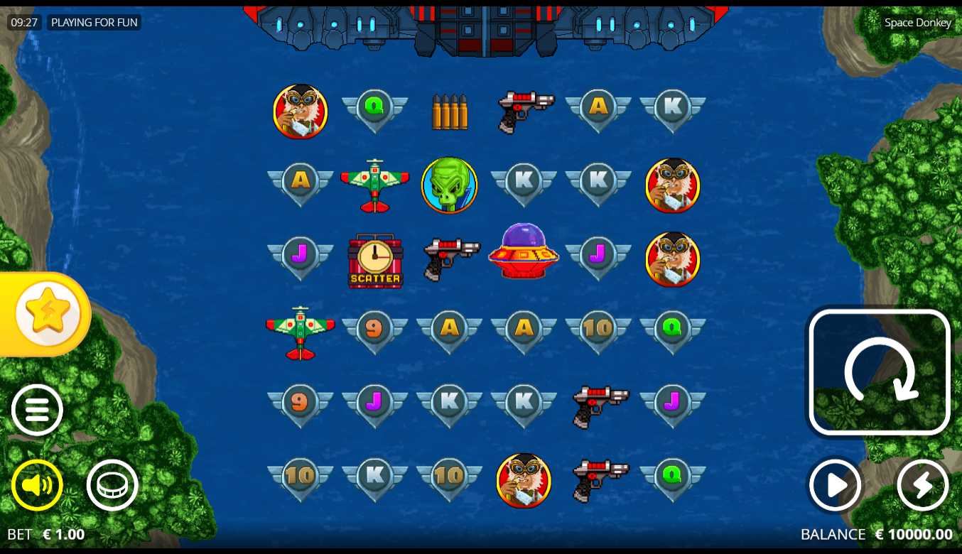 Every additional Scatter landed during the base game over their minimal needed number of 3 grants +1 shield to protect the space monkey from alien attack. The same is true for every life, starting with the second one, among those available at the moment of the Seek N' Destroy bonus game activation through the Teleport within the Hide N’ Seek mode. So, the 3-lives total score will guarantee you as many as two protecting shields.