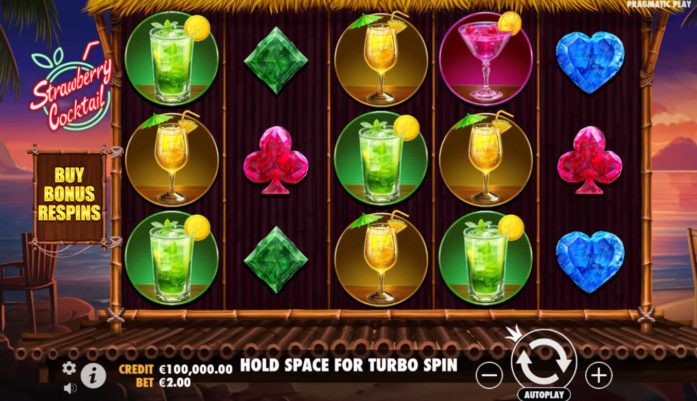 Strawberry Cocktail, a vibrant slot themed around cocktails, ocean and stunning sunset. Released on 22 February 2024, this game invites you to enjoy refreshing features while basking in the atmosphere of a beachside paradise.