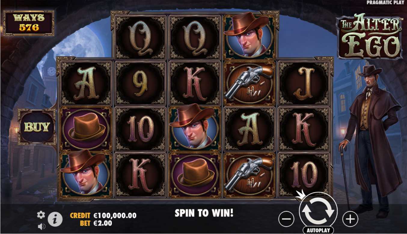 Enter the world of The Alter Ego by Pragmatic Play, where the classic tale of Dr. Jekyll and Mr. Hyde comes to life on the reels. Featuring a 5x4 layout, this slot has the potential to increase from 576 ways to win to an incredible 100,000, all thanks to the Free Spins feature triggered by hitting 3 Scatter symbols to get 3 spins. During the round, each subsequent Scatter resets the number of spins back to three and also increases the height of the reels by one row. Also, don't forget to use the Bonus Purchase for quick access to bonuses and embark on a dark adventure with the chance to win up to an astonishing 10,000x Max Win Multiplier, uncovering thrilling features and rewards along the way.