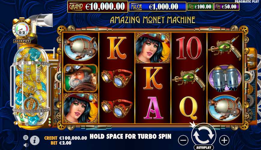 The Amazing Money Machine is a slot by Pragmatic Play released on May 6, 2021. Enter a world of steampunk gambling, and get ready for an unusual and maybe lucrative gambling experience. Hold and Spin, expanding reels, and a local Jackpot make this game worth checking out. Join us in exploring this thrilling world, which is full of adventures.