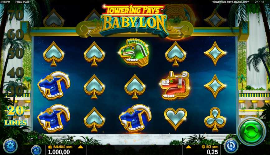 Top-rated place to play Towering Pays: Babylon in real-money mode is at an online casino that is: +Licensed, +Safe and secure, +Offers fair terms, +Pays out quickly, +Gives good rewards, and +Offers live customer care.