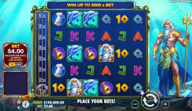Pragmatic Play's New Slot, Waves of Poseidon, aside from a colorful main character, the mighty god of the seas and oceans wielding a powerful trident, also got a tantalizing array of bonus features, including two sets of multipliers up to x50. As such, the game features the Wild special symbol, the fruitful in terms of winnings Tumble feature, and the much-loved by many Free Spins. On top of that, this slot even features a Super bonus round with improved Free Spins that you can trigger both from within the primary mode and due to the 'Buy Bonus' option. In general, if your desire to check out another smash hit of the established provider is already awakened, we invite you to read our detailed review of the fresh release of Pragmatic Play.