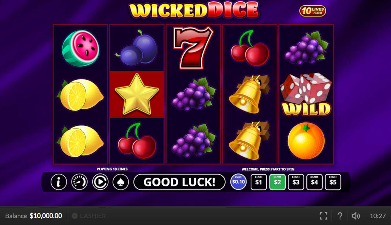The best place to play Wicked Dice 10 Lines with cash stakes is at an online casino that is: +Regulated, +Safe and secure, +Transparent, +Pays out quickly, +Gives good rewards, and +Offers live customer care.