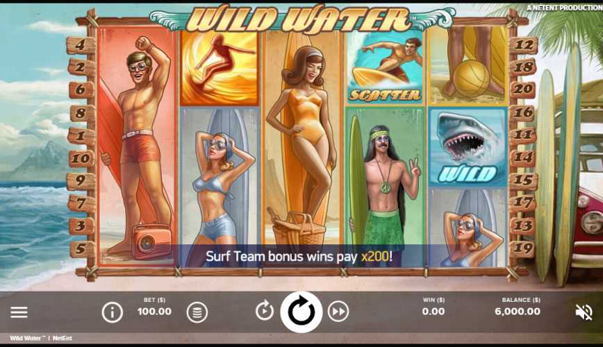 The shining sun, ocean beaches and athletic young surfers all look great and inviting. Both visually and technically, Wild Water is a good video slot. There won't be a dull moment throughout your session thanks to a variety of fun extra features, and those wins might be as large as 2,000 times your current bet. Tall in 3 rows, symbols with the image of young people loving high waves and a fair wind look very good. Gather them 5 on the game field and take a good bonus. Unusual Wild Water gameplay brings a lot of fun and a huge number of opportunities to win. Playing this slot might take you back to the beaches of the 1960s and 1970s if that's somewhere you've always wanted to go. Take your bet as a board and saddle drums like waves and feel good luck and freedom.